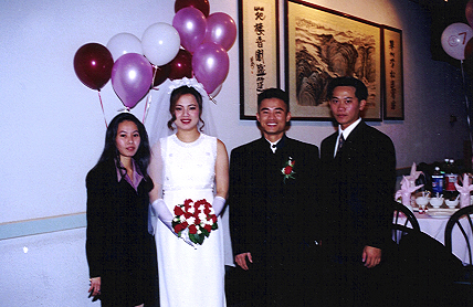 My Brother's wedding two years ago. From left to right: me, my sister-in-law Trang Le, my brother Tuan Nguyen, and my boyfriend Hung Nguyen.