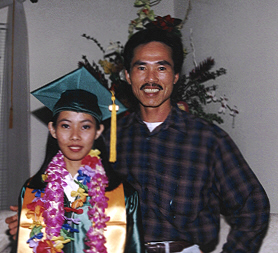 This is me and my dad. This picture was taken in June 1998 on my graduation day at Evergreen Valley College.