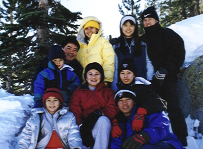 This picture was taken in Reno, Nevada in December, 1999. Top row: my niece Hoai-Lien (yellow jacket), Linh (Toai's friend), and my youngest brother Toai. Second row: my brother-in-law Lap, my nephew Duy, my oldest sister Hien and me. Last row: my niece Ngoc-Lien and my boyfriend Hung.
